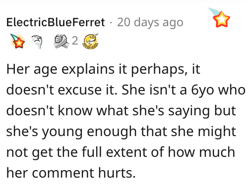 And another Reddit user said she may be young but that’s no excuse for how she acted.