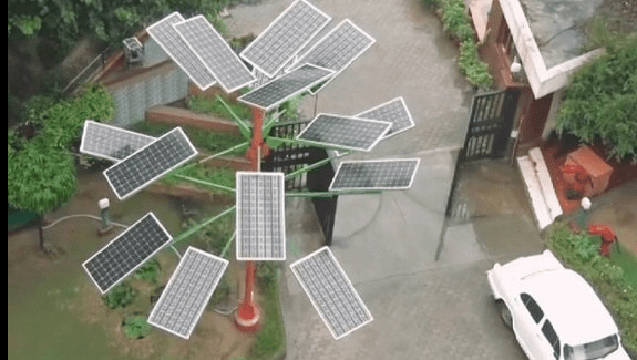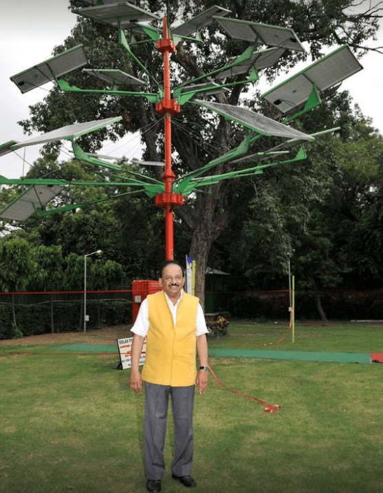 The Solar Power Tree is made up of structures supporting photovoltaic panels that branch out from a central pole. The structure generates up to 5 kilowatts, which is enough to energy to light up five houses. Here’s a shot of the designer and developer of the Solar Power Tree, Dr. Harsh Vardhan.