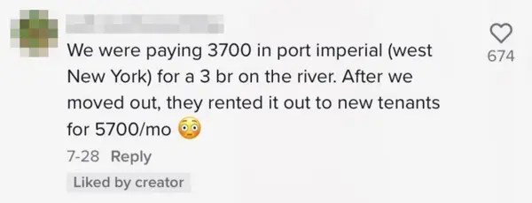 The post was put up by a renter in Jersey City who saw his rent increase over $1200 from one lease to the next – and when he shared the detail on TikTok, he amassed over 380,000 views.