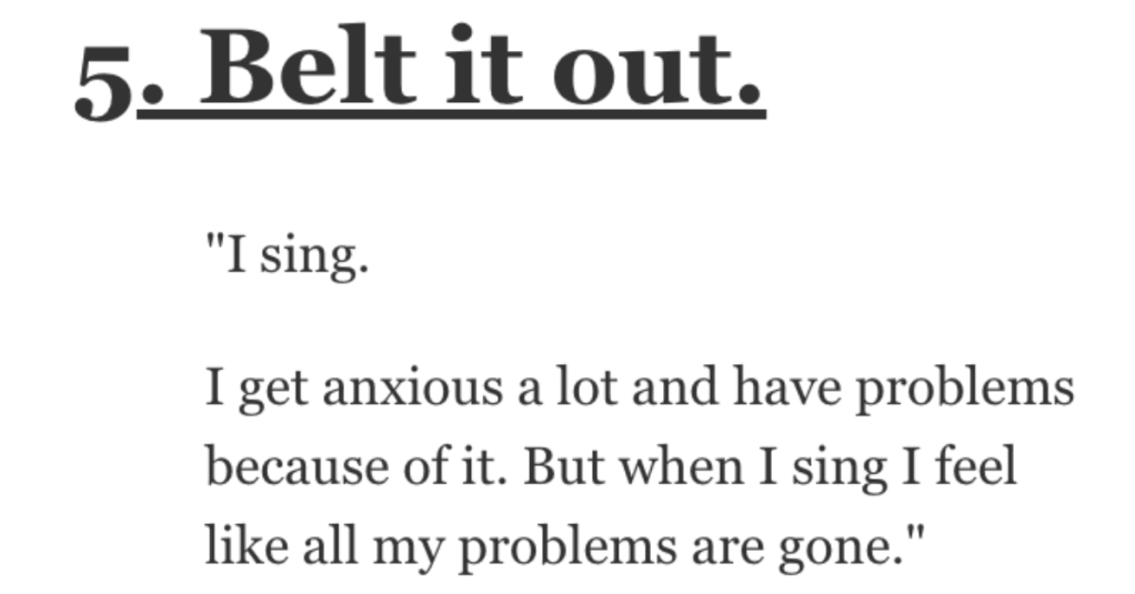 I get anxious a lot and have problems because of it. But when I sing I feel like all my problems are gone.