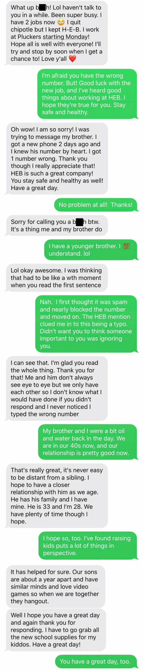 I feel like it’s getting harder and harder to accidentally text a wrong number in this world. We basically don’t really call or text anyone who isn’t already programmed into our phone, and so instances like these are getting fewer and far between.