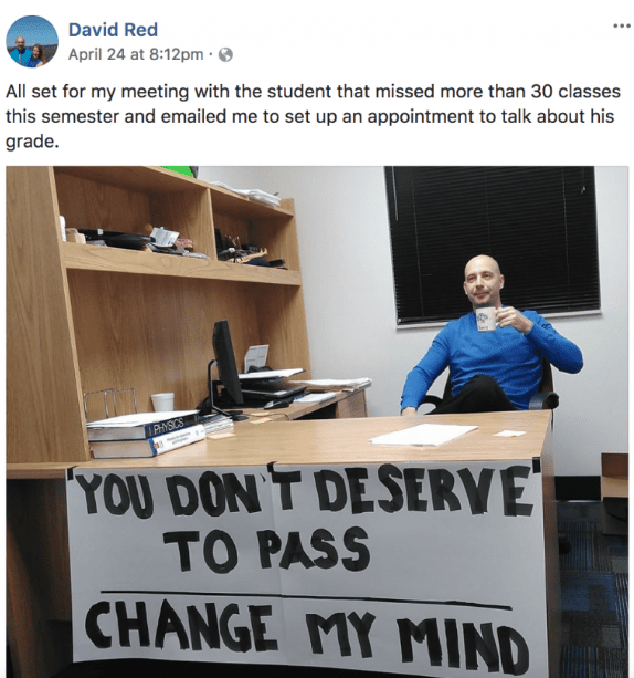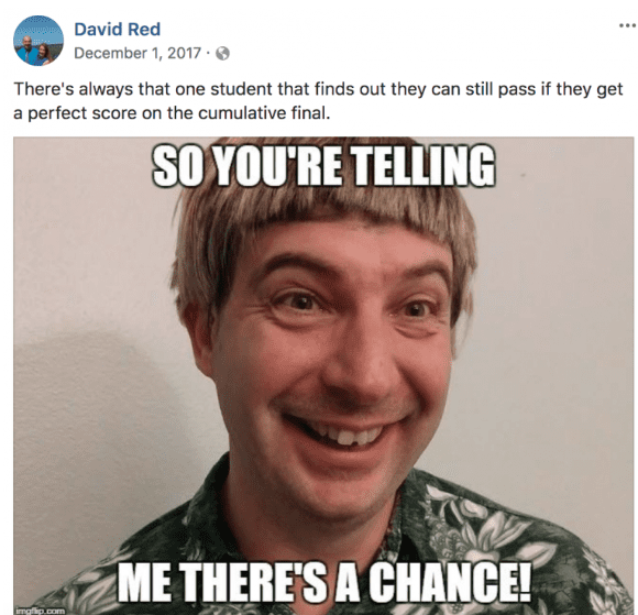 Not only does being a professor take years of schooling, but, it also means that you have to put up with students like us–who procrastinate, send endless emails, and always ask for extra credit. One professor from St. John’s River State College has found a way to hilariously clap back at all of his annoying students–by turning himself into famous memes.