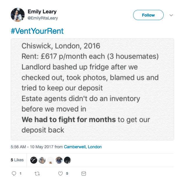 In order to exact at least a small form of revenge, London renters took to Twitter with #VentYourRent, a hashtag campaign started by Generation Rent. Company spokesperson Dan Wilson told Dazed: