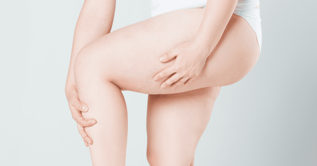 Thigh circumference is not only determined by body fat – it’s also determined by the size of lower body muscles like your quads.