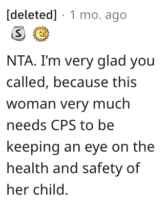 And this Reddit user said she’ll be an a**hole if she DOESN’T call CPS.