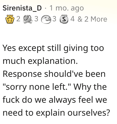 Another individual agreed but said even that is too much explanation…why do we need to explain everything?!?!