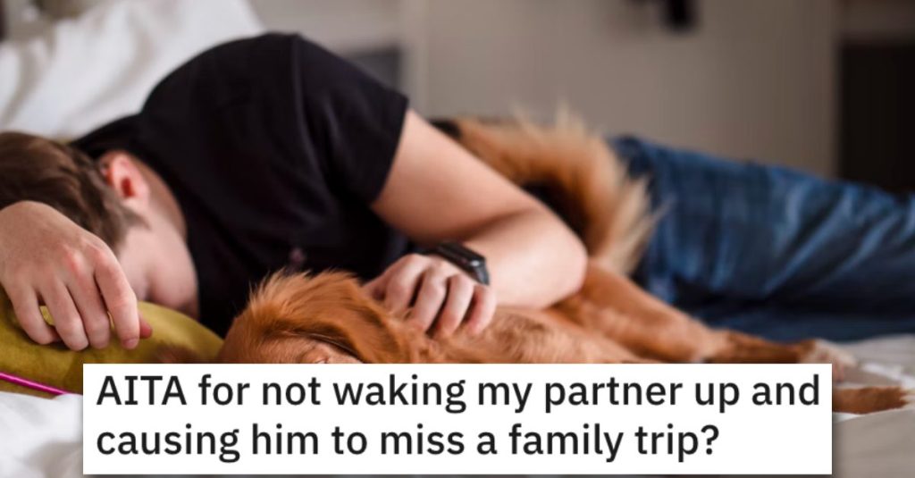 The night before the trip I told him I’d need him to be awake at 6.30am, so we could get everyone ready to leave by 8am. He said he’d set an alarm and we went to bed. My alarm went off at 6.30am and I got up, while my partner kept sleeping.