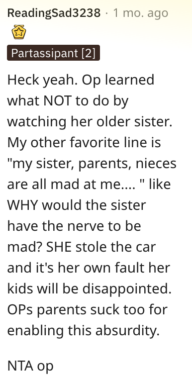 And this Reddit user said she’s NTA and that her parents suck.