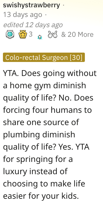 The girls were p**sed when we told them about the work we were doing on the house. They were saying it’s not fair that my husband gets a gym when the twins share a room and that we chose to work on the backyard instead of adding the third bathroom.