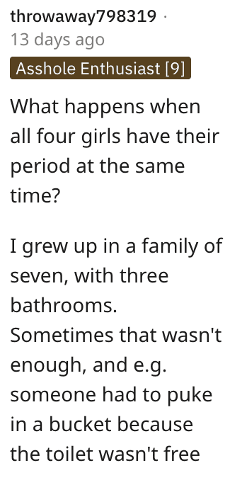 And this Reddit user brought up a good point about living in a house with four daughters…