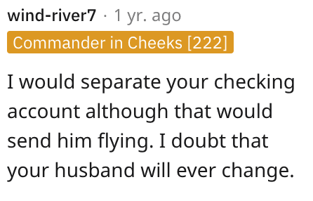He got really quiet on that one and stormed out saying he would be staying with his family (only about and hour away) I have been getting angry calls and texts due to the fact “he didn’t feel supported in his own home” and “if I am making the money I can get whatever I want when I want and I shouldn’t throw it in his face he doesn’t have an income” which is not true I’m trying to keep a roof over our head and food on the table.