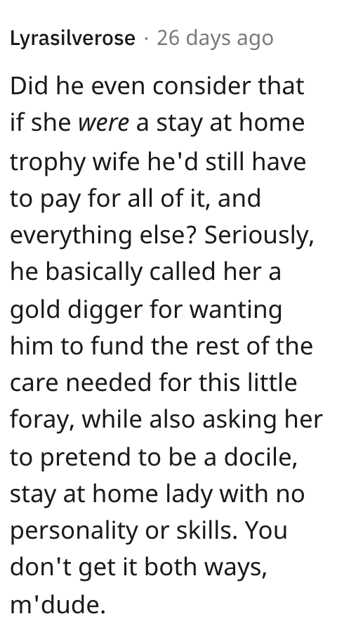 When she asked for him to pay for her to have the nails removed for work, they got into an argument in which he accused her of using him for his money, then telling her that “most women” would know how to do all of those things for themselves.