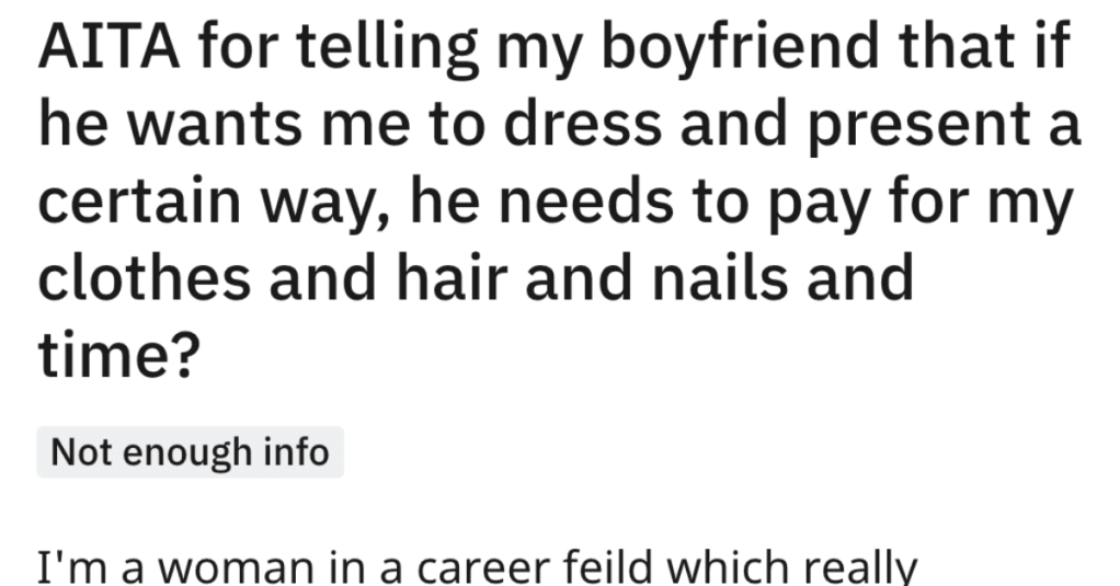 He agreed to pay for the clothes and salon appointments and I also asked him to compensate me for my time getting “presentable” for those events. Additionally, if he wanted me to act a certain way during these events which was different than my usual behavior at a social event, it should be treated like work, I’d expect to be paid for my time.