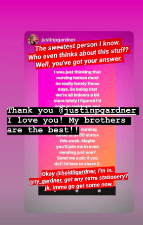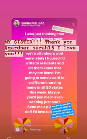 Enter Saturday Night Live phenom and genuinely stellar example of how to human, Heidi Gardner. She found herself thinking about that one day, and posted this idea to her Instagram story: handwrite a letter to a nursing home in all 50 states.