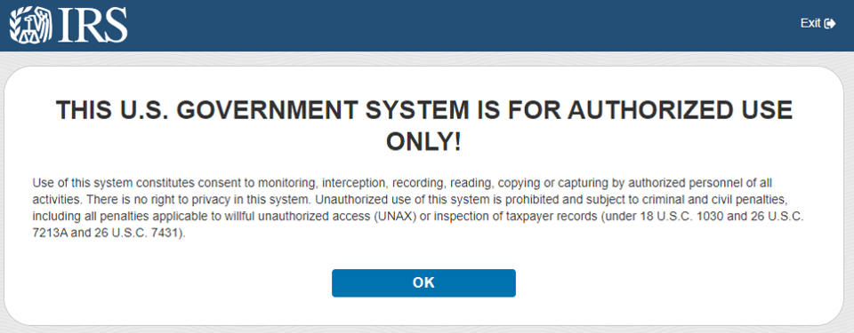 “Unauthorized use of this system is prohibited and subject to criminal and civil penalties, including all penalties applicable to willful unauthorized access (UNAX) or inspection of taxpayer records.”