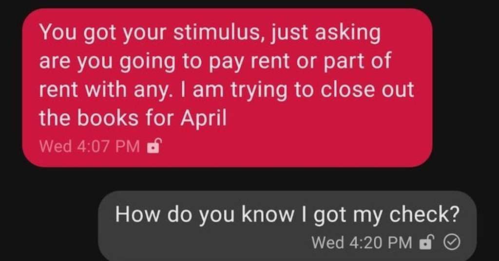 Multiple people on Twitter have shared horror stories of their landlords informing them they know they received their money and are they going to use some of it to pay rent.