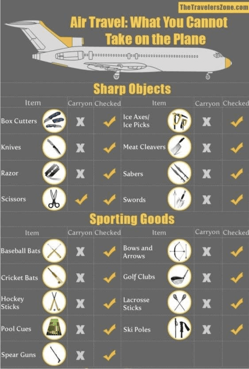 This may seem like a no brainer, but pay attention to what you can and cannot bring through TSA checkpoints to avoid possible fines or even prison time. That would really put a damper on your long-awaited vacation…