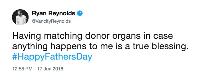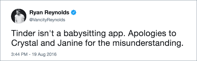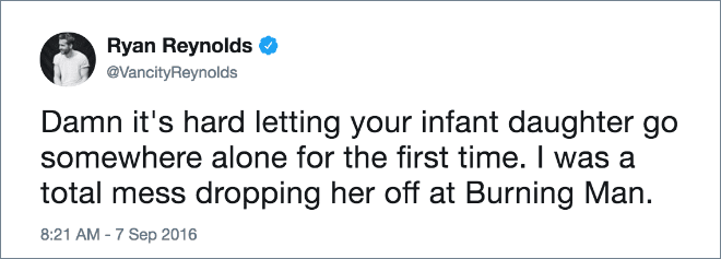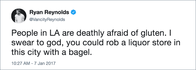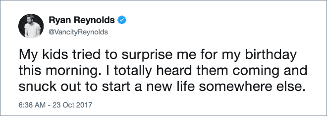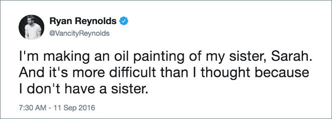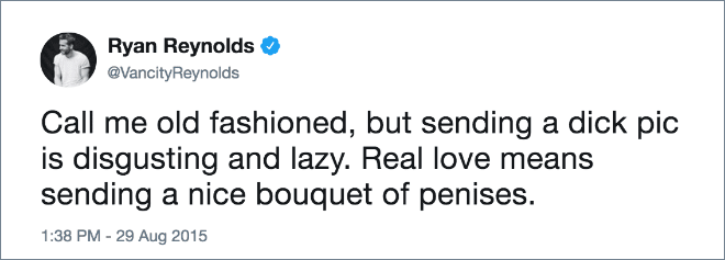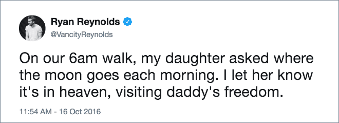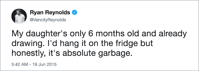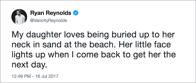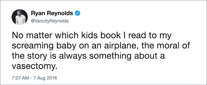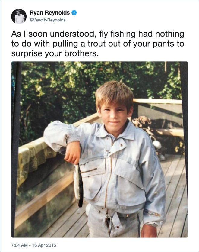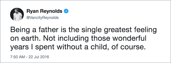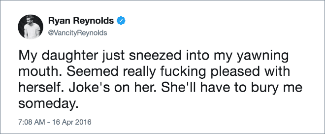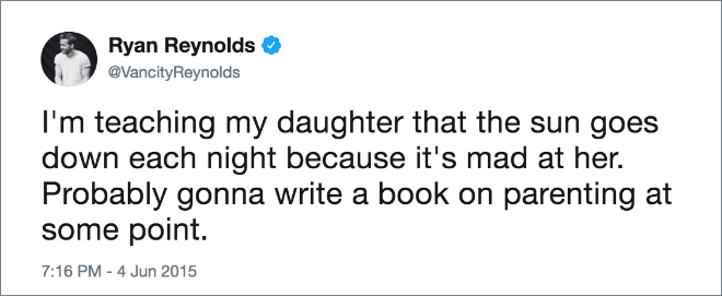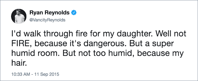 Here are 20 of Mr. Reynolds’ funniest tweets. He seems like he’s just a regular guy, except really funny and handsome, and I like that. So refreshing!