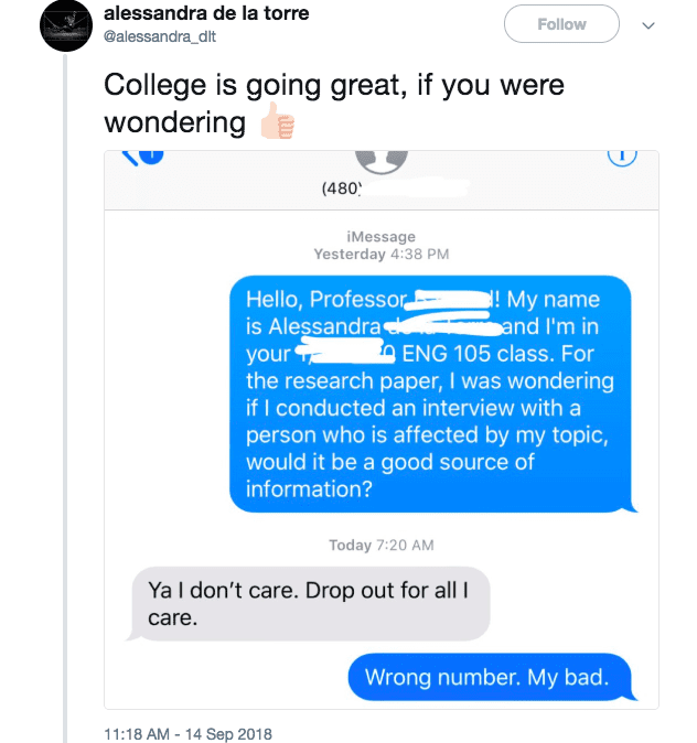 #2. It’s mostly adorable that she thinks college profs would care about this the way high school teachers had to.