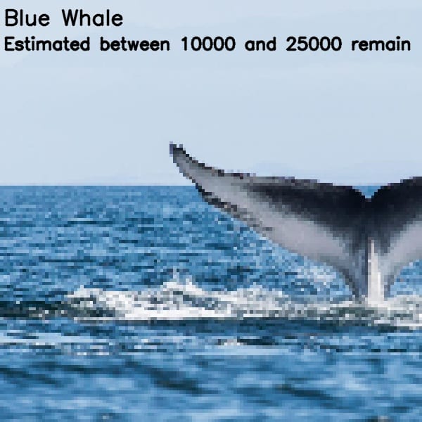Every Pixels is one animal. The more pixelated the image, the closer it is to extinction.