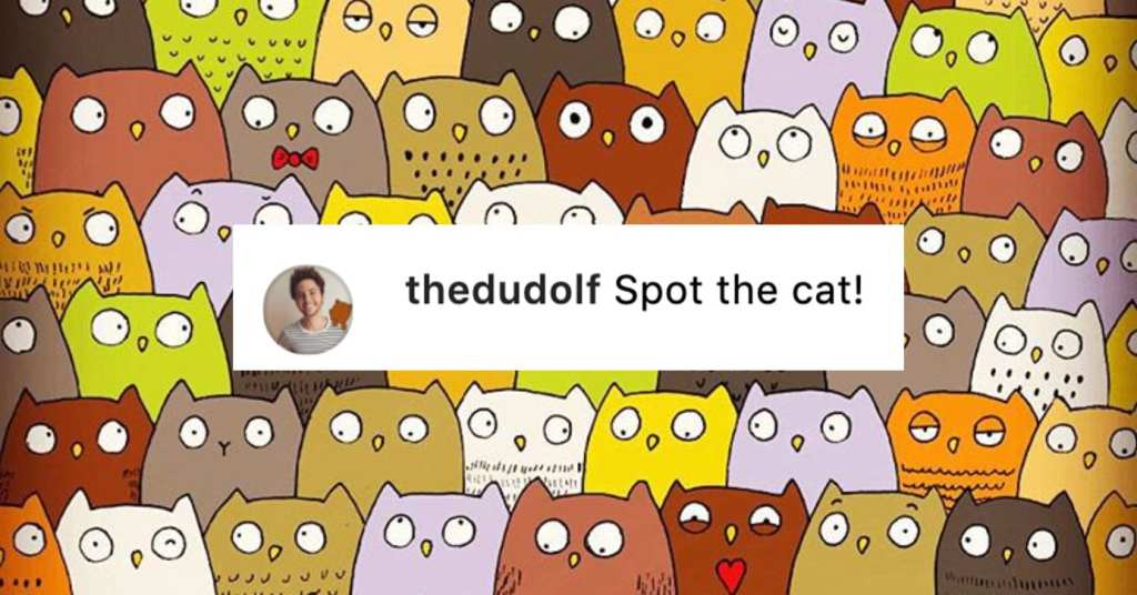#1. It’s tough to find the cat among the owls!