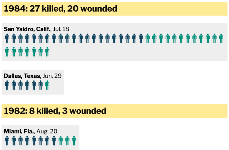 What are the answers? And why is this a uniquely American problem? Yes, these kinds of mass shootings do happen in other countries on occasion, but not nearly as often as they do in the United States. 2019 is not over yet and there have already been 57 people killed and 78 wounded this year. Compare that to 1982: 8 killed and 3 wounded.