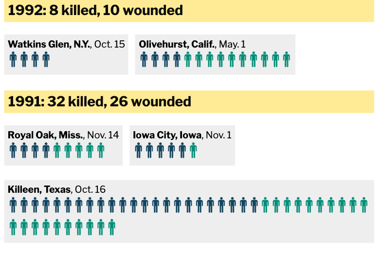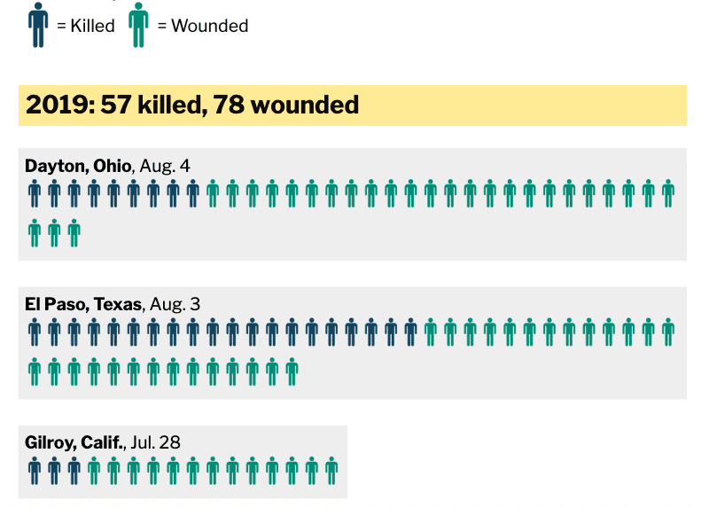 What are the answers? And why is this a uniquely American problem? Yes, these kinds of mass shootings do happen in other countries on occasion, but not nearly as often as they do in the United States. 2019 is not over yet and there have already been 57 people killed and 78 wounded this year. Compare that to 1982: 8 killed and 3 wounded.