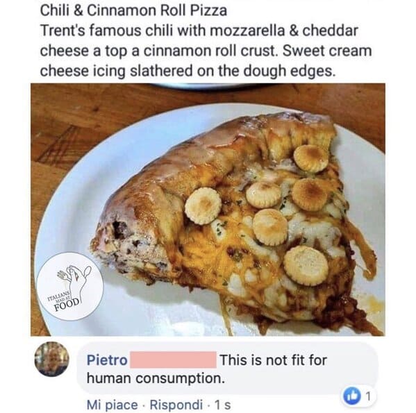If you show an Italian person some fake and/or terrible food that’s claiming to be Italian food – like jarred red sauce, for example – they will delight in pitching a complete fit.