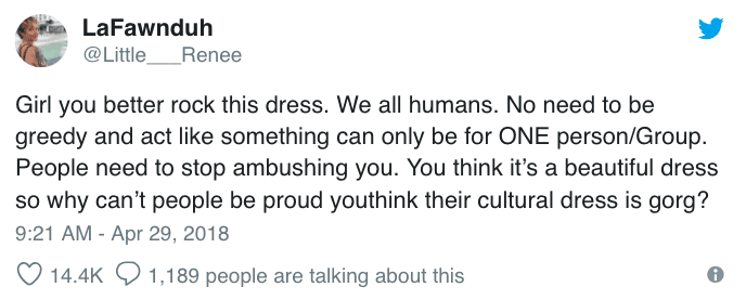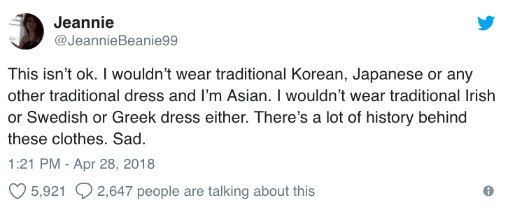 Others brought up the fact that when some wear cultural clothing, they are targeted.