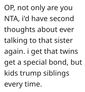 And this individual also said she’s NTA and that she might want to think about shutting her sister out completely.