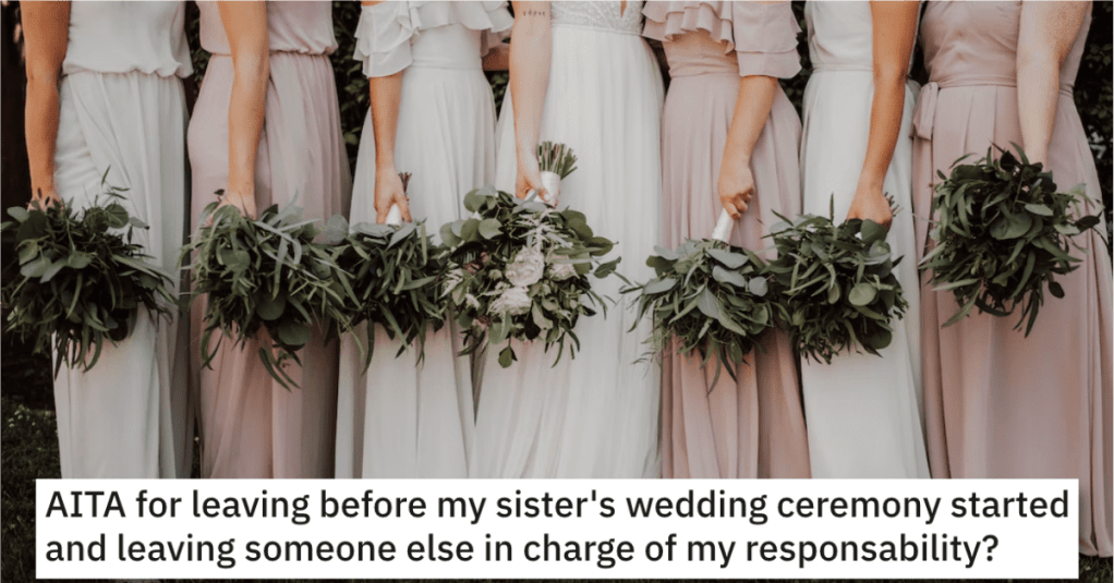 AITA for leaving before my sister’s wedding ceremony started and leaving someone else in charge of my responsibility?