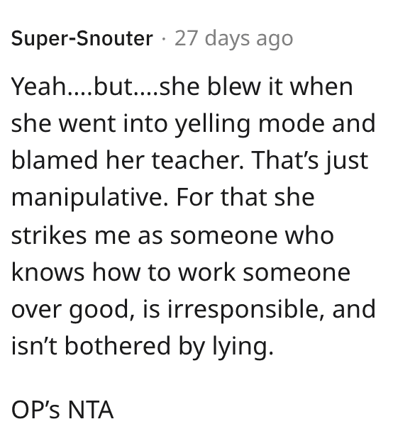 Was the teacher wrong to lose her patience or is this exactly what Krissy needed to hear? Let’s find out what Reddit thinks below!