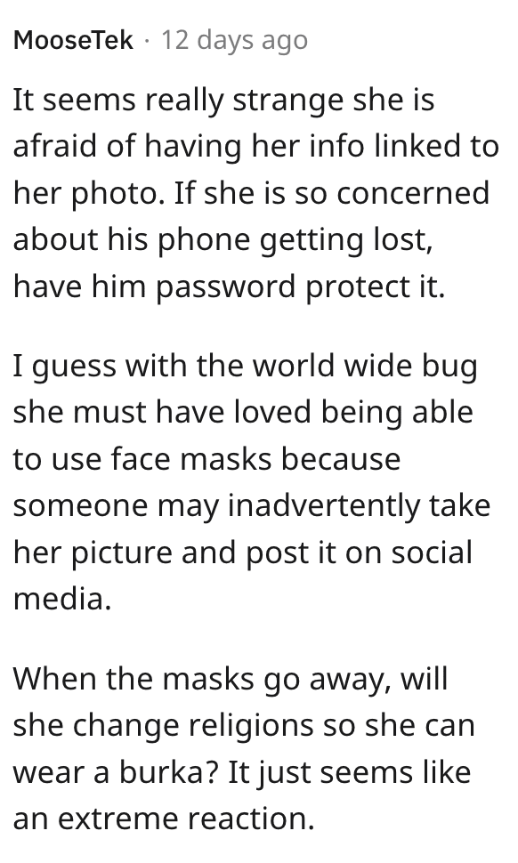 OP kept after him until he deleted the image, but her husband let her know that her behavior has become too much and he deserves to be able to live his life.