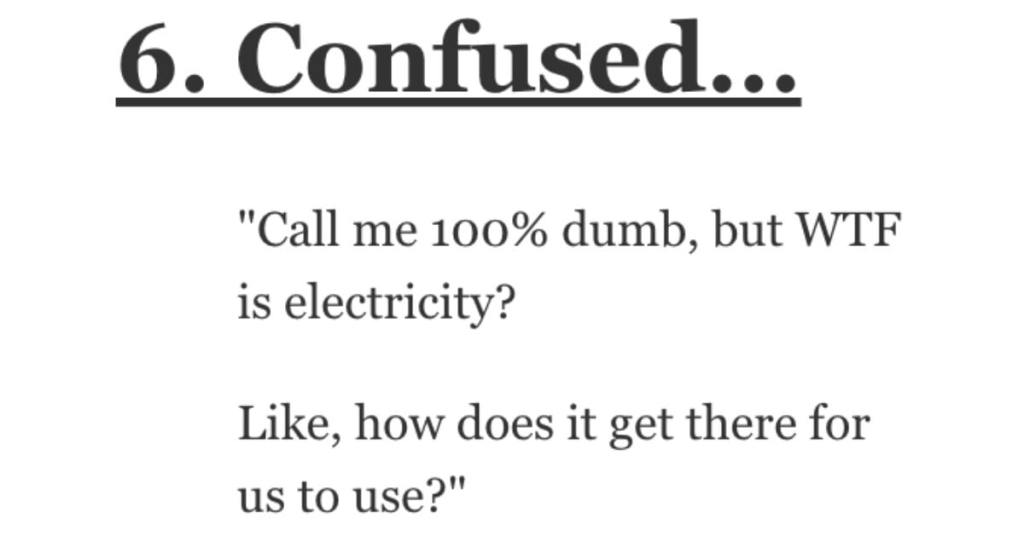 “Call me 100% dumb, but WTF is electricity?