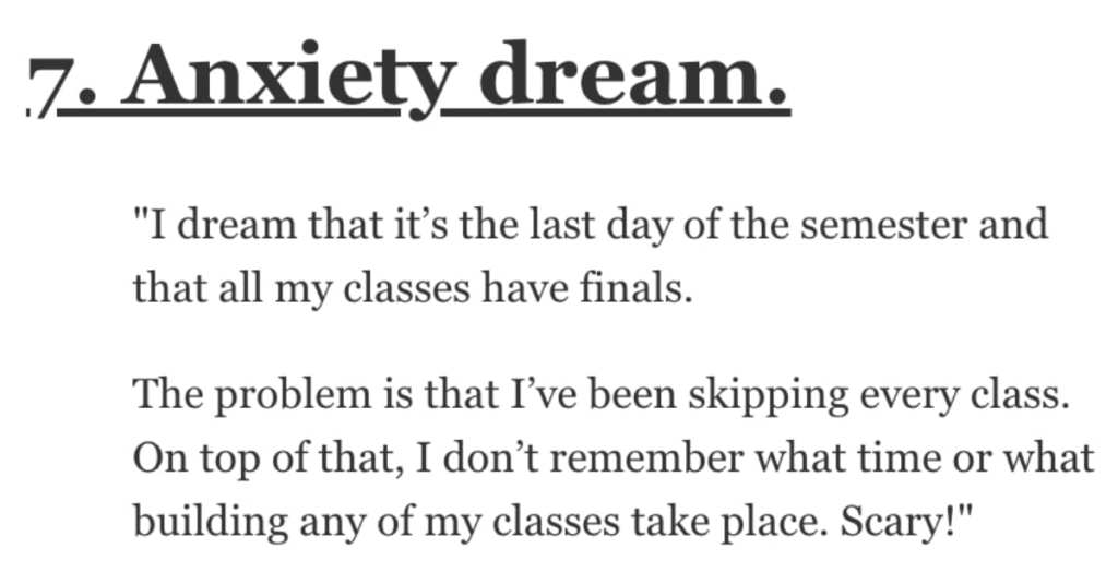 “I dream that it’s the last day of the semester and that all my classes have finals.
