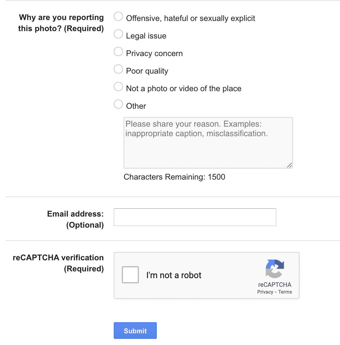 Write in the provided field why you want the image blurred (for example, you may be concerned about safety issues).