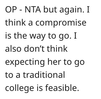 And this Reddit user said she’s NTA but they also think they should figure out a compromise.