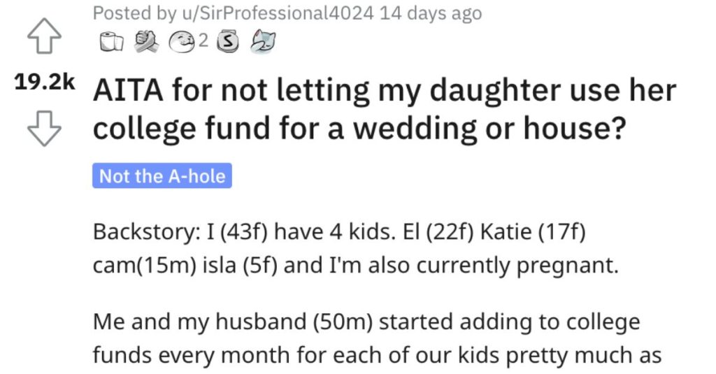 AITA for not letting my daughter use her college fund for a wedding or house?