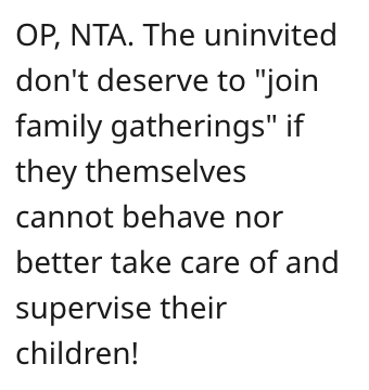 Now they are all calling me an asshole for embarrassing them for having children and wanting to be part of family events. I said that they could not understand why rules were in place and that is why they were not invited.