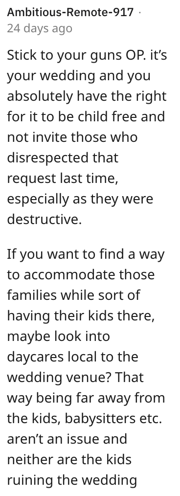 “My sister got married last summer. She had a very elegant and beautiful wedding and reception planned. It was child free.