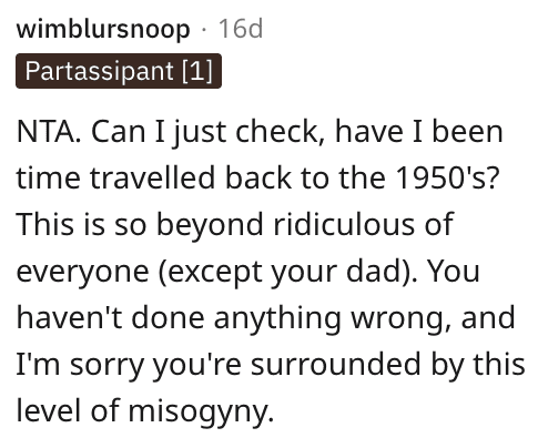 I told this to my parents. My dad agrees with me, and says John knew what I was like regarding make-up before the date and if he has a problem, that’s on him. My mom on the other hand says that not wearing make-up was “a b**ch move” because it shows I’m not interested.