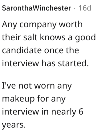 Lastly, another Reddit user said that companies that know what they’re doing don’t care whether a woman wears makeup or not.