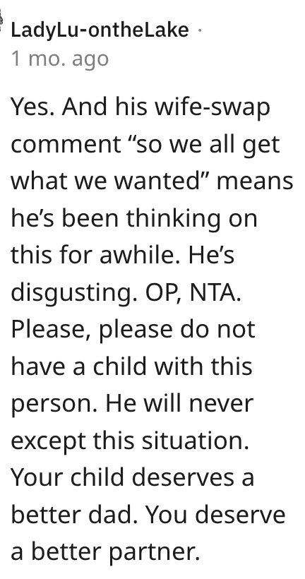 I shut the entire thing down after that, saying I didn’t want to have kids with him when he was acting like this, maybe never after that.