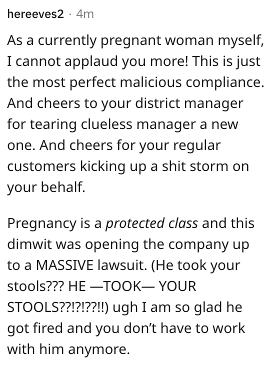 He calls us into the office IMMEDIATELY and starts going off on us for not taking the uniform policy seriously. Mid-tirade the district manager arrives, FURIOUS. She turned to us preggo eggos and nicely told us to untuck our shirts and head back out to the floor before turning to clueless manager and going ballistic on him for enforcing something that we preggos were exempt from.